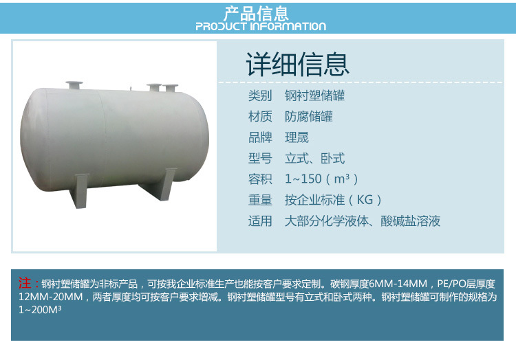 14、加厚的特殊鋼襯塑PE/PO儲罐,可耐規(guī)定的壓力和真空。